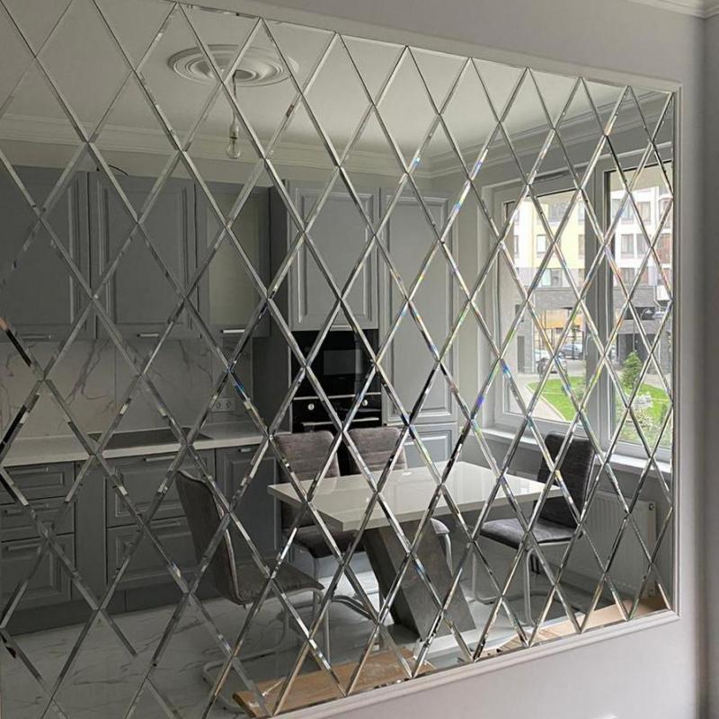 Использована серебристая зеркальная плитка "вытянутый ромб".